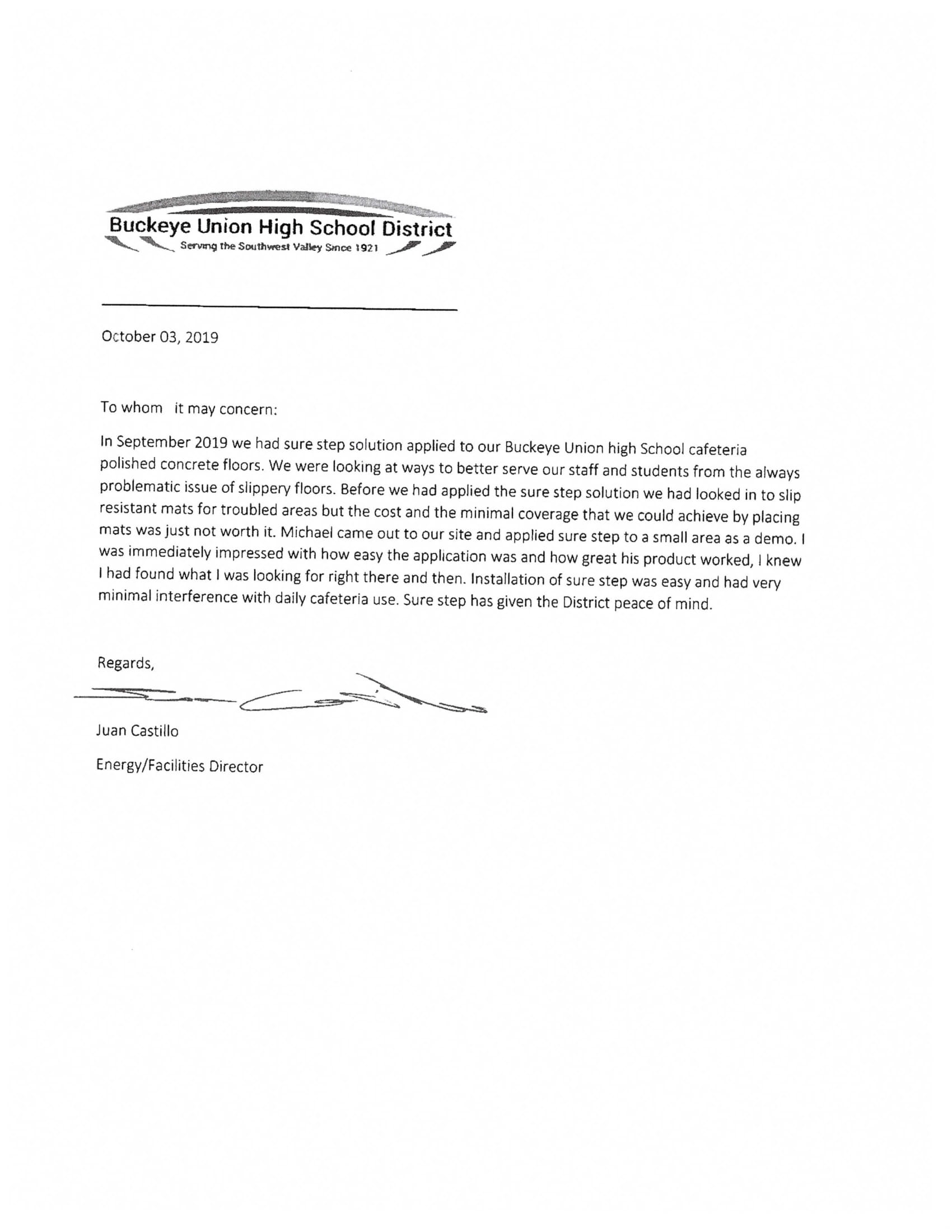 "Just a quick note to tell you your Sure Step product is still working great! Our floors are as safe now as they were when first applied.