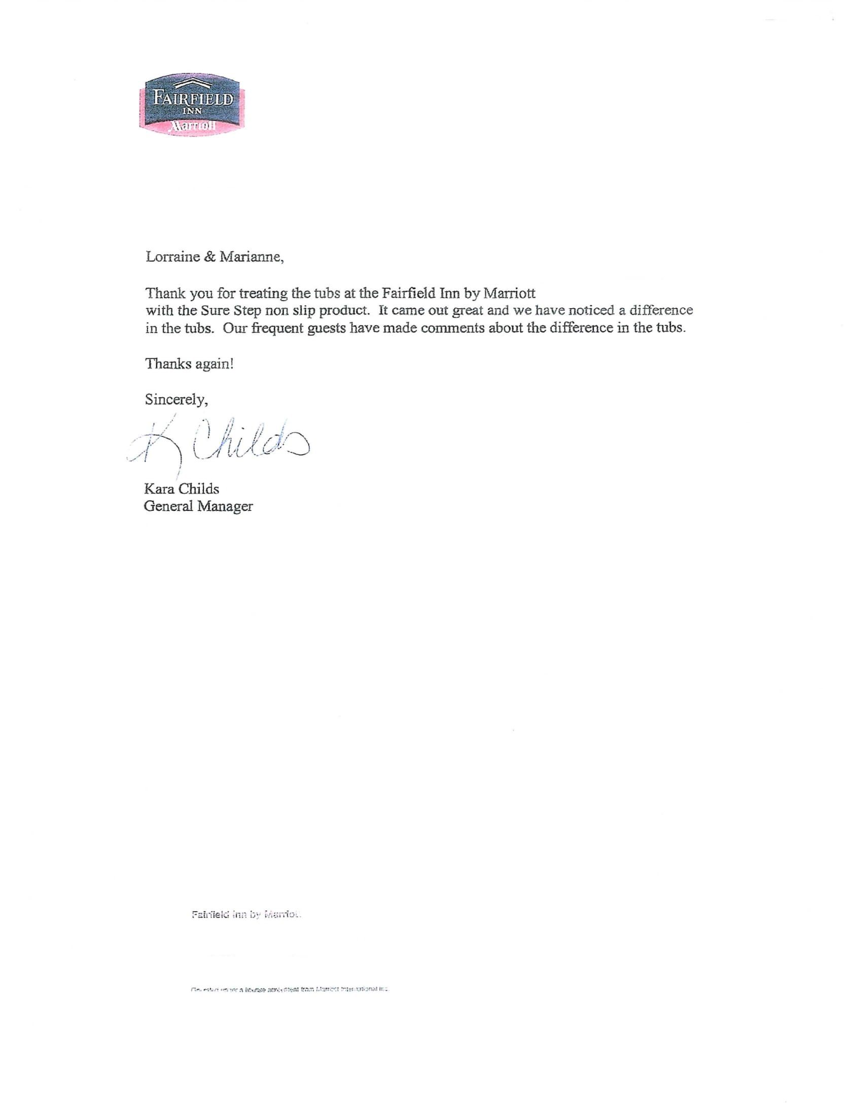 "Our bathtubs always had bathmats until we were introduced to SURE STEP Non-Slip. Now all our bathtubs are treated with your remarkable product. "